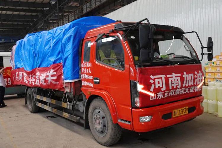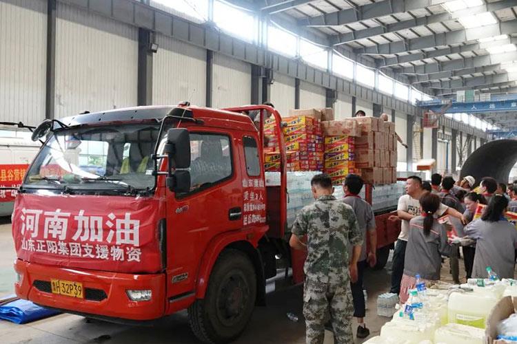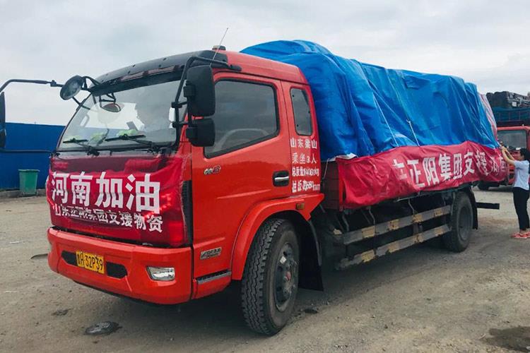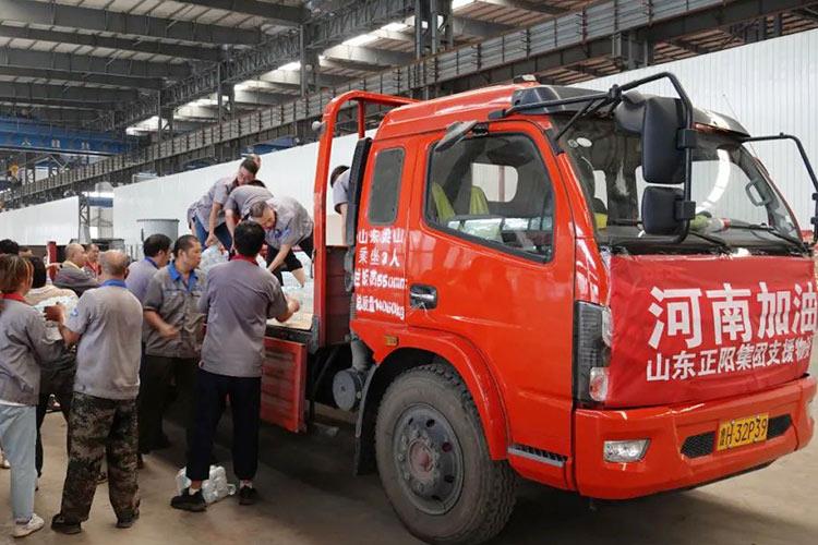 洪水無(wú)情、人間有愛(ài),一方有難、八方支援,2021年7月27日,正陽(yáng)集團(tuán)調(diào)集車輛,組織骨干奔赴河南省重災(zāi)區(qū)新鄉(xiāng)市進(jìn)行支援。此行來(lái)回驅(qū)車500余公里,為災(zāi)區(qū)送去方便面、礦泉水和餅干等物資。