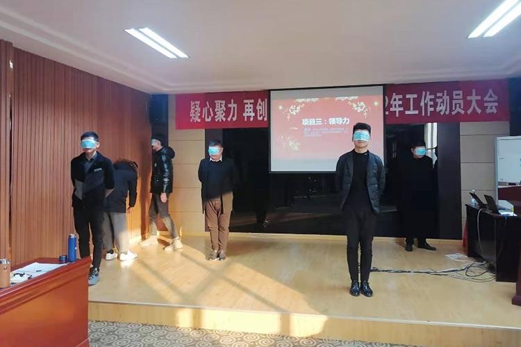 參加訓(xùn)練的人員需要戴上眼罩,打亂順序,然后聽(tīng)隊(duì)長(zhǎng)指揮站到指定位置上,如果不聽(tīng)指揮放任自己的個(gè)性在絕對(duì)看不見(jiàn)的情況下完成任務(wù)是極難的,7個(gè)小組按照要求出色完成了站位。